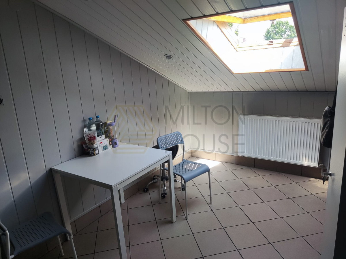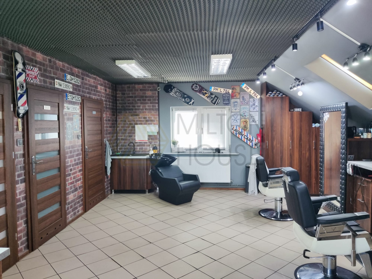 - Poddasze - ok. 35 m², z oddzielnym wejściem - wynajmowane na salon fryzjerski;