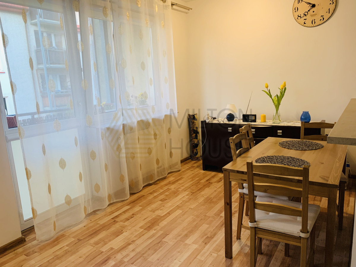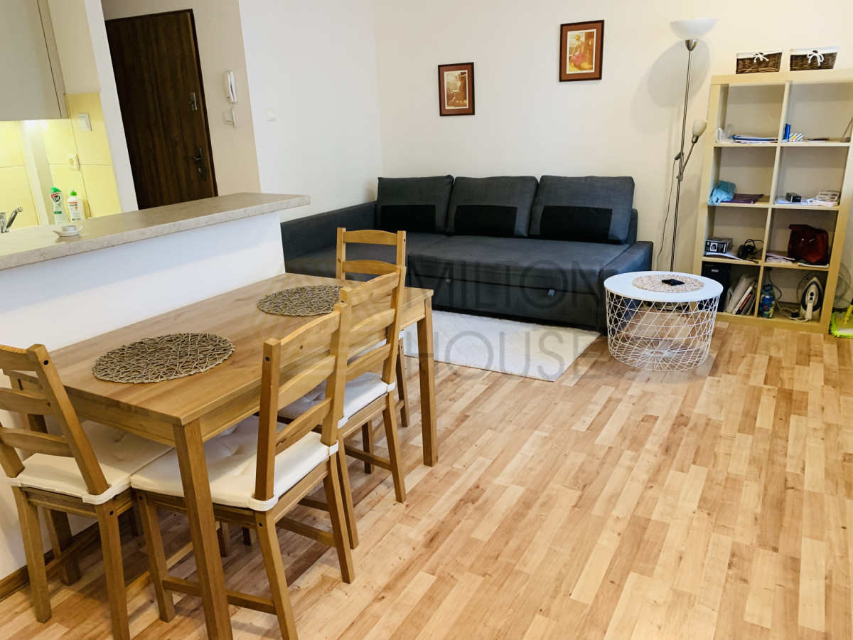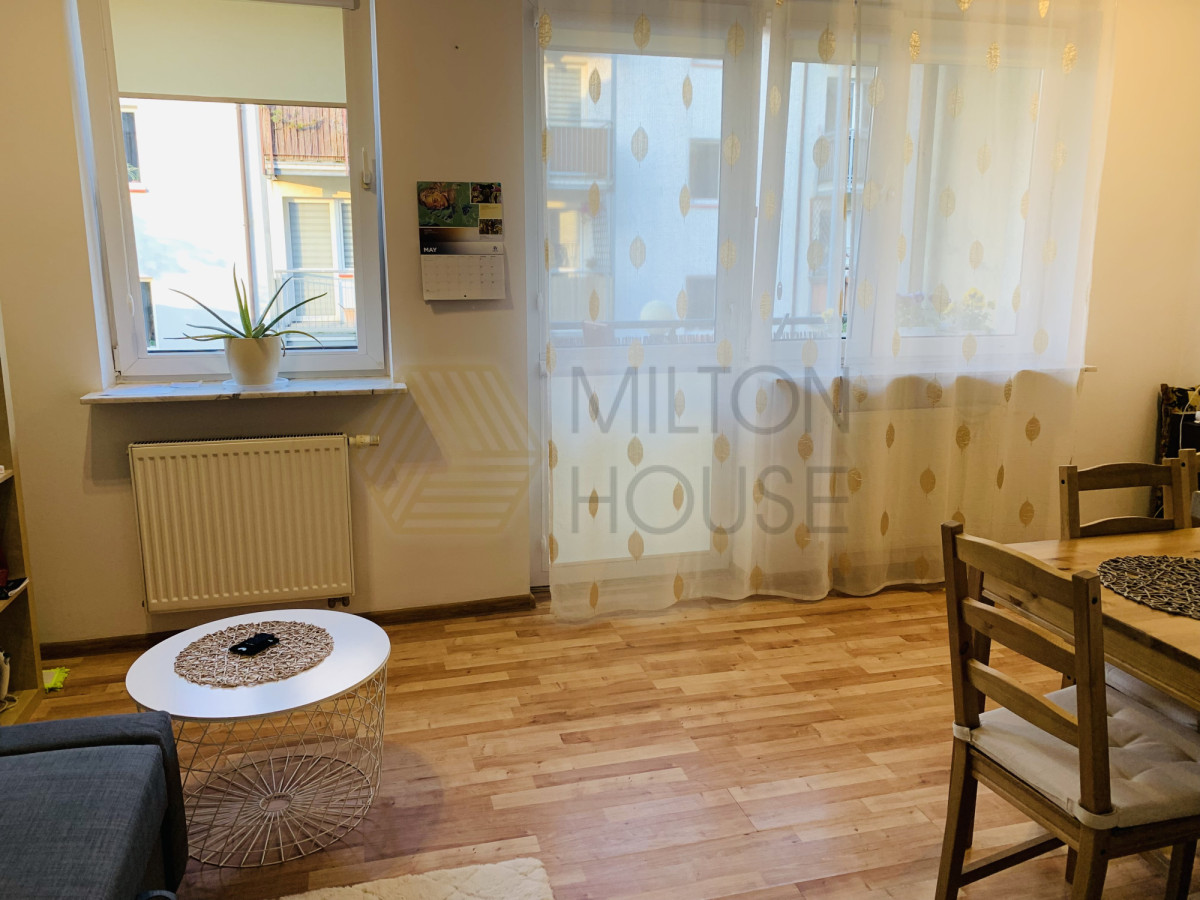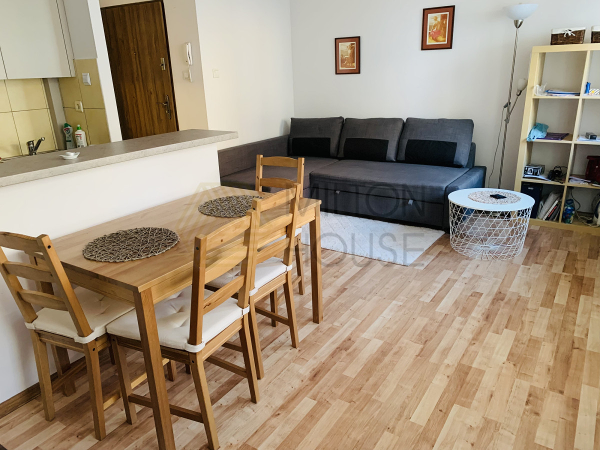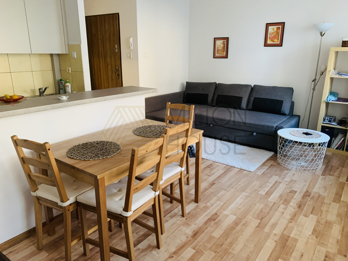 Mieszkanie jest zadbane, funkcjonalne i w pełni umeblowane. Składa się z pokoju z aneksem kuchennym, łazienki z prysznicem, przedpokoju oraz balkonu.